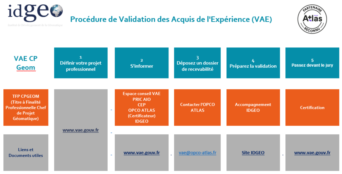 Procédure VAE Titre à Finalité Professionnelle Chef de Projet Géomatique (CPGEOM)
